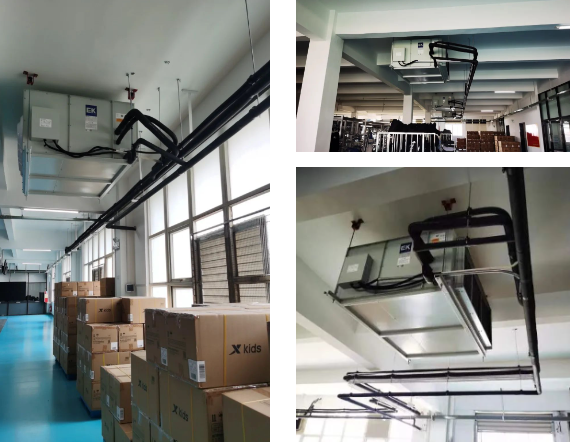 工业厂房大部分门窗敞开式,新风负荷大,且地面空间有限,室内机不宜落地安装。