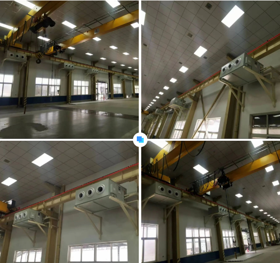 机组标配球形出风喷口,实现无风管15~30m远距离送风,无需吊顶安装,无需风管安装,吊车工作更方便。