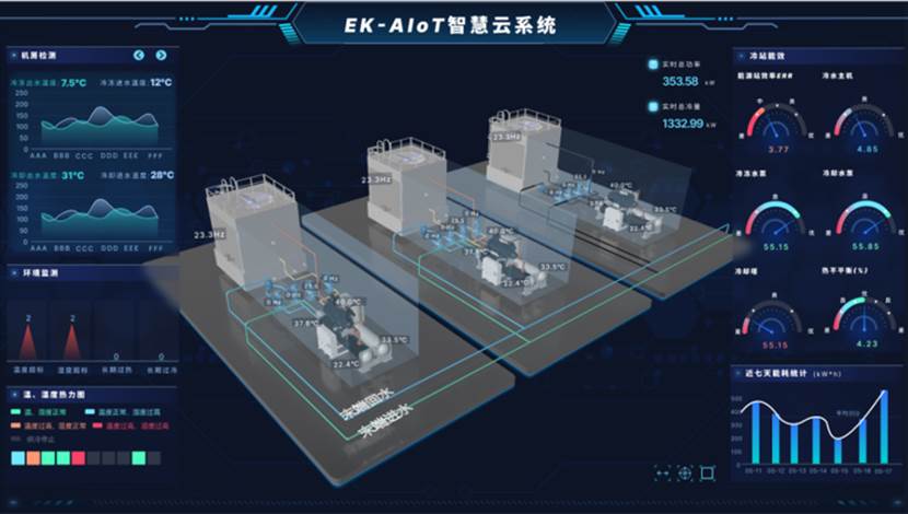 云智慧高效集成冷站结合高效机房设计理念标准化BIM三维设计,加入了高效机房控制系统及能耗能效检测,为客户提供EK- AIoT智慧云平台控制功能,可以远程控制与监测,确保机组高效运行,为新能源工业项目客户降低全生命周期使用成本,缩短投资回报周期,可实现机房全年综合能效EERa最高6.0!