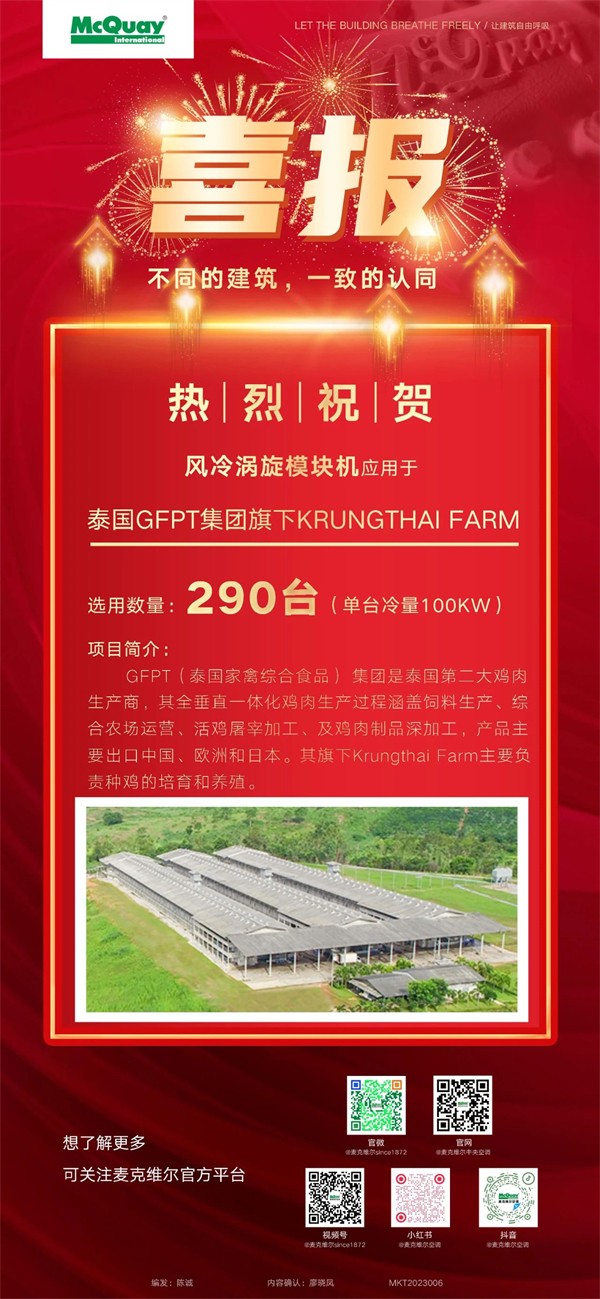 深圳麦克维尔与泰国大金销售分公司结合客户实际需求,为客户提供灵活、稳定、经济的风冷涡旋模块机组解决方案,获得了客户认可并一举斩获订单共290台!