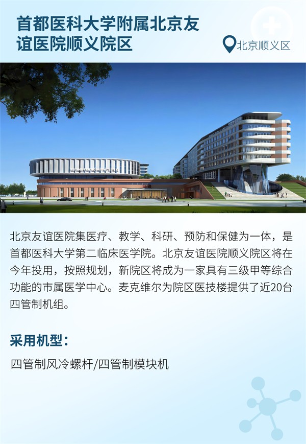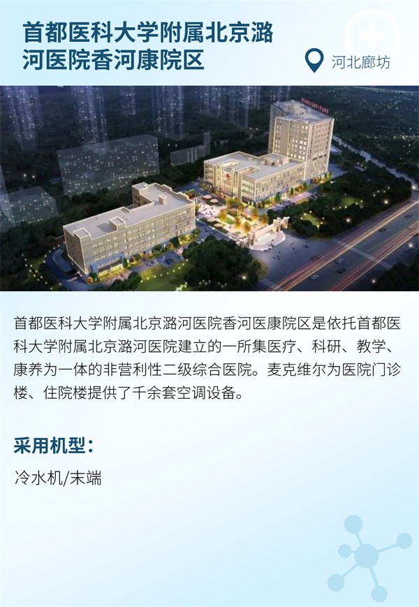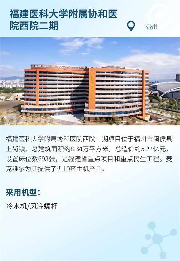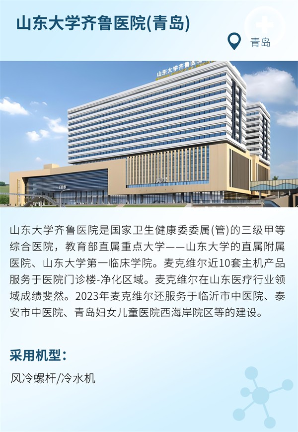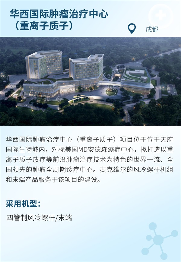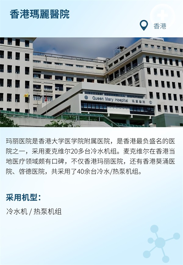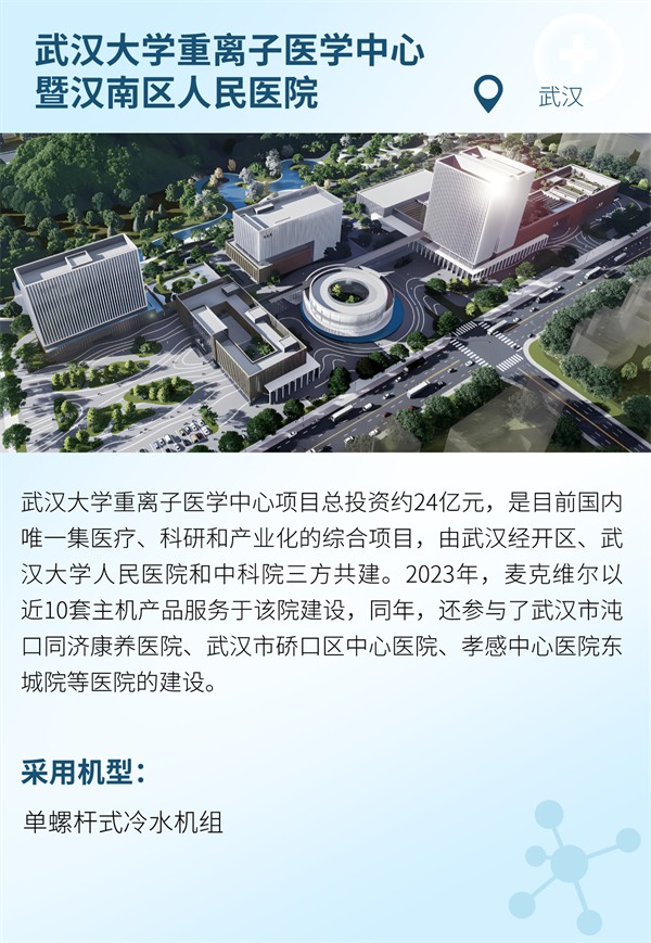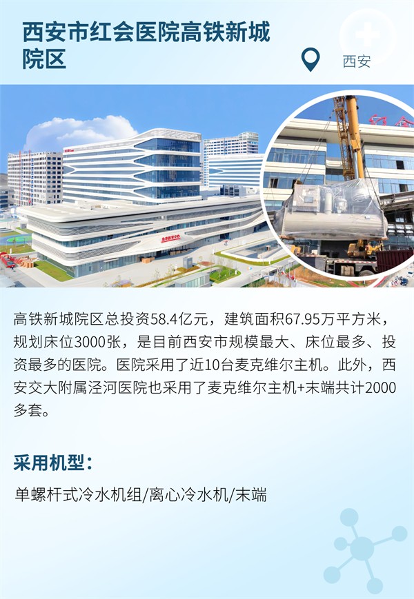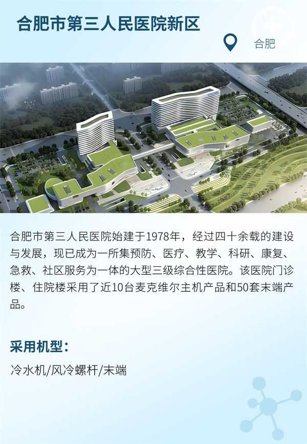 麦克维尔的高效冷水机组、变频四管制机组、直膨式空气处理机组、净化空气处理机技术正为万千医护人员和病人创造健康、安全、高效、智慧的医疗环境。