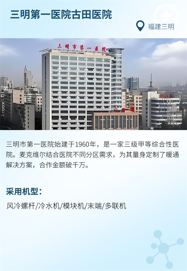 作为暖通净化行业的领军品牌,麦克维尔牢牢把握医疗空调净化与节能技术核心,致力于设计、开发符合医疗净化、安全与节能需求的产品和方案,服务于众多医院建设。