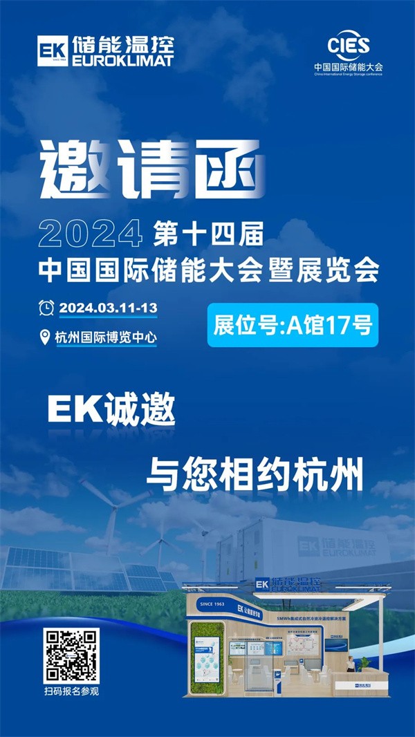 3月11日-3月13日,CIES 第十四届中国国际储能大会暨展览会将在杭州国际博览中心盛大开启。EK储能温控邀您锁定A馆17号展位,共襄储能技术盛宴。
