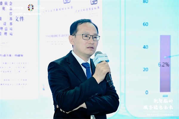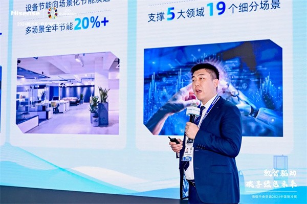 海信日立智能化推进部总经理 矫晓龙现场分享海信ECO-B智慧楼宇与能源管理系统,海信全新推出的ECO-B智慧楼宇管理系统,将空气管理、能源管理、运维管理一套集成,让建筑运维更高效节能、让空间设计更人性化,切实的打造未来空间绿色生命共同体,场景领域覆盖商业企业、工矿厂房、政府公建、教育培训、医疗卫生等5大领域并延伸19大行业场景。