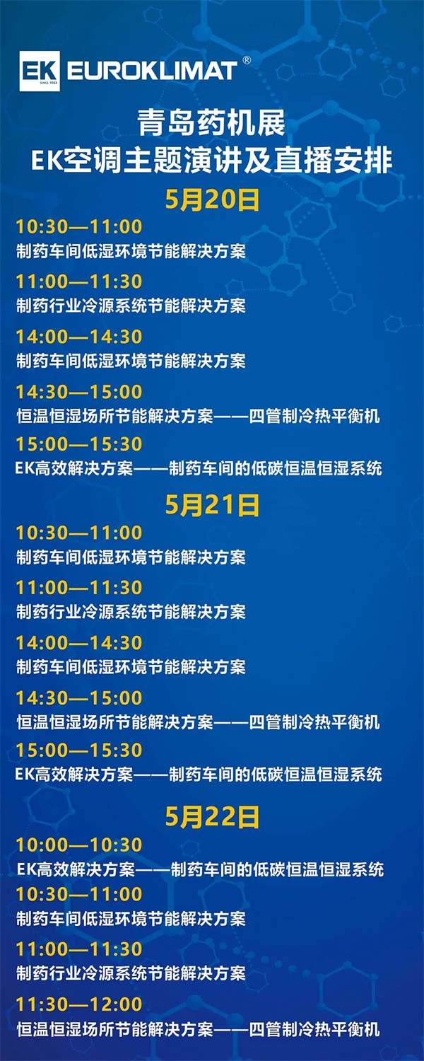 2024春季药机展将持续到5月22日,欢迎关注EK工业空调展位演讲时间表,了解更多精彩内容,EK工业空调在CN-60展位恭候您的莅临!另外,也请关注EK欧洲节能空调公众号,明天详解本次展出的产品,揭示EK工业空调凭什么闪耀2024春季药机展!