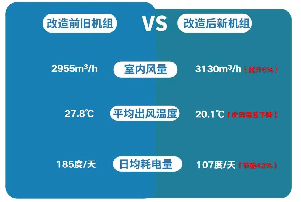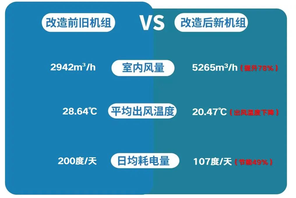 2、对比改造前后空调出风温度和风量,温度与风量均有大幅改善,员工作业环境与客户用餐体验均得到提升,员工流失率降低,客户满意度提升;