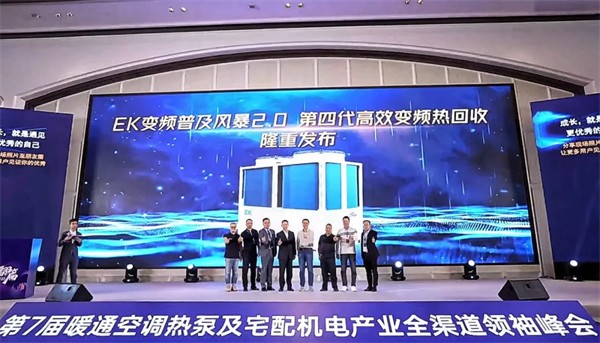 2023年12月,在第7届taptap点点手机端热泵工程商及宅配机电服务商生态大会,EK空调启动变频普及风暴2.0,隆重发布第四代高效变频热回收机组,再次卷出新价值。
