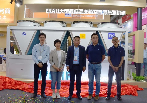 2024年5月,EK空调以商用、工业、家居多场景绿色供热解决方案隆重亮相ISH China & CIHE 中国国际供热通风空调、卫浴及舒适家居系统展览会,现场启动变频普及风暴3.0行动,重磅发布了“火麒麟”系列170HP EKAH大型超低温变频热泵。