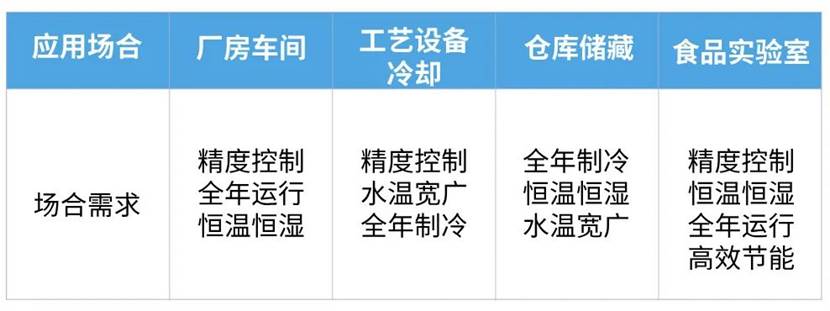 面对食品行业的需求,麦克维尔提出风冷冷水(热泵)机组的工艺冷却解决方案,主要应对以下四个场景的需求: