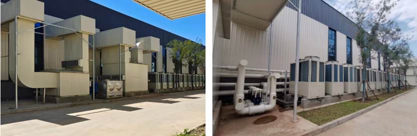 1、复合蒸发冷提高整个系统效率,全年制冷风冷冷水机组调节不同环境温度的系统冷量需求,超低温空气源热泵为参观区域和部分办公楼制冷和冬季采暖;