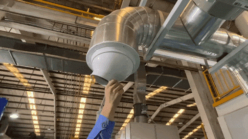 车间多为大层高开放式区域,实际人员作业区占比较小,传统空调易造成冷量浪费。岗位送风机可单独控制,且机组自带风口,可接风管,定点送风,灵活调节,避免了能源的浪费。