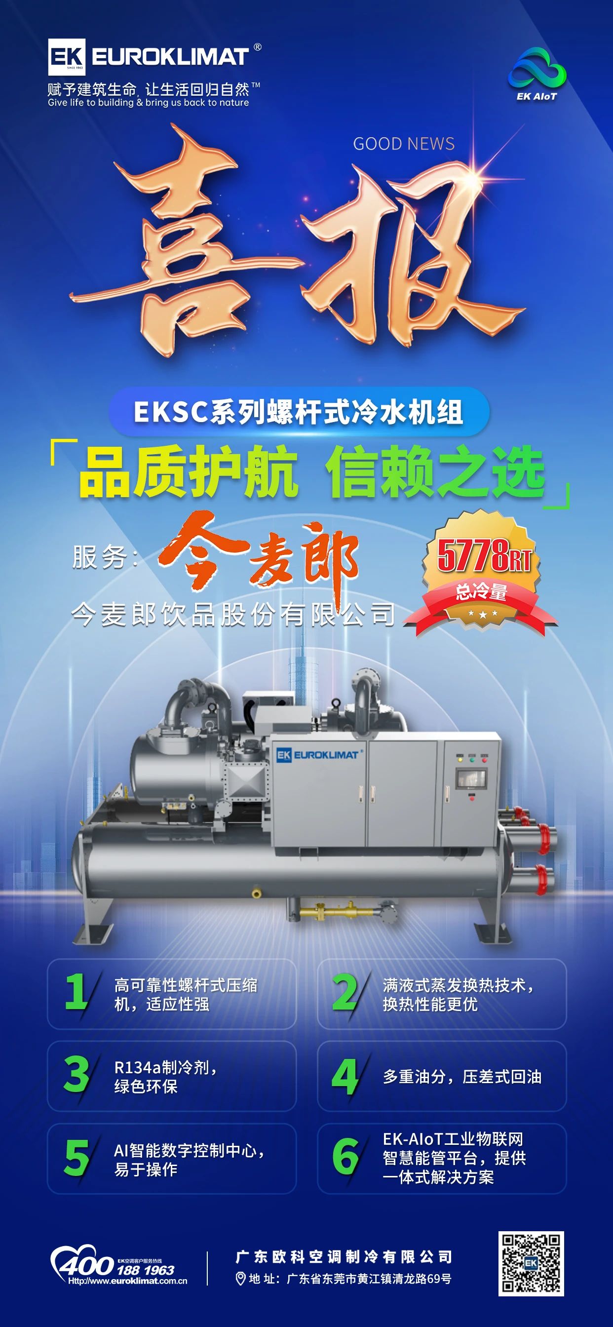 总冷量5778RT!EKSC系列螺杆式冷水机组成功服务今麦郎