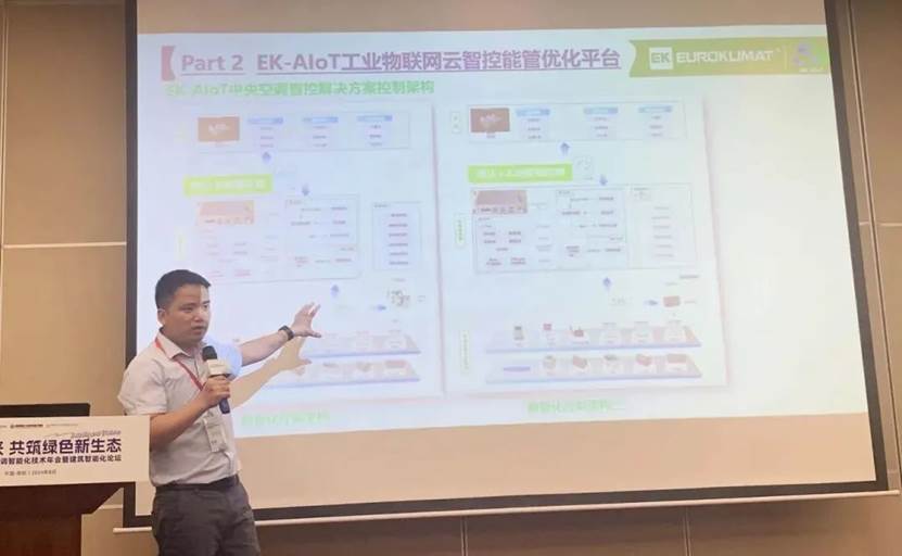 在8月28日下午的综合能源与智慧调控专场上,EK智慧云事业部高级经理李友良发表主题为《EK-AloT 工业物联网云智控能管优化平台——数智化解决方案》的演讲,详细介绍该平台如何帮助企业实现精细化能源管理、数智化节能增效以及数智化运维管理。