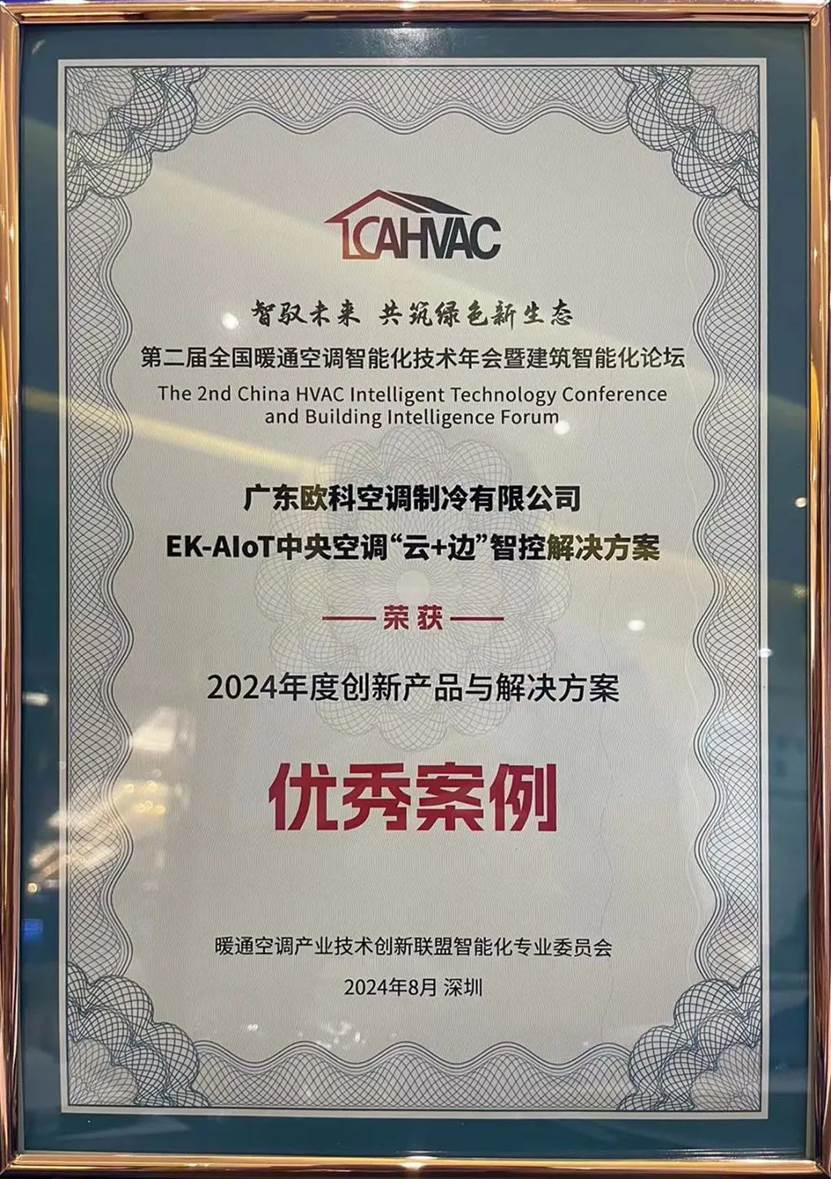 同时,EK-AIoT中央空调“云+边”智控解决方案凭借其先进性、实用性和创新性,入选“2024年度创新产品与解决方案优秀案例”,彰显EK工业空调在智能化解决方案领域的领先地位和创新能力。