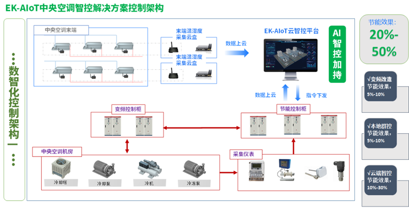 融合数字化技术(DT)、信息技术(IT)与运营技术(OT),可匹配不同应用场景,极大提升中央空调系统的智能节能水平和智能运维管理水平。基于EK-AIoT智控解决方案,可实现科学高效节能及智慧运维,推动厂房级、公辅车间级、站房级场景向智能化、零碳化转型。