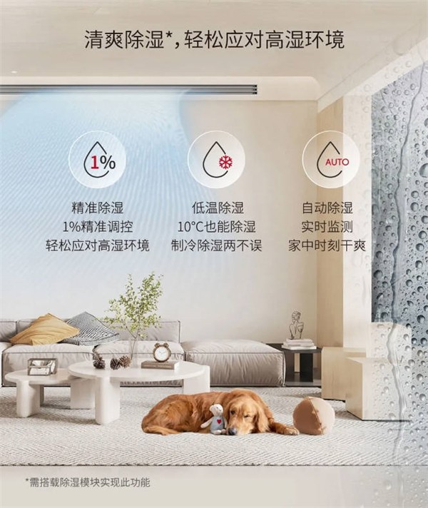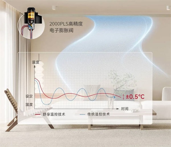 舒爽体感,守护四季舒适。立体感温控制,搭配2000PLS高精度电子膨胀阀,实现线控器土0.5℃C精准设定,避免忽冷忽热。