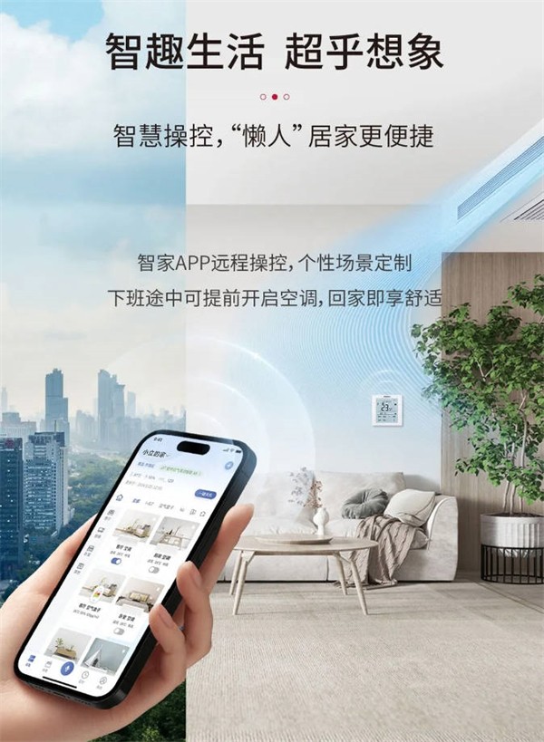 智家APP远程操控,个性场景定制下班途中可提前开启空调,回家即享舒适。