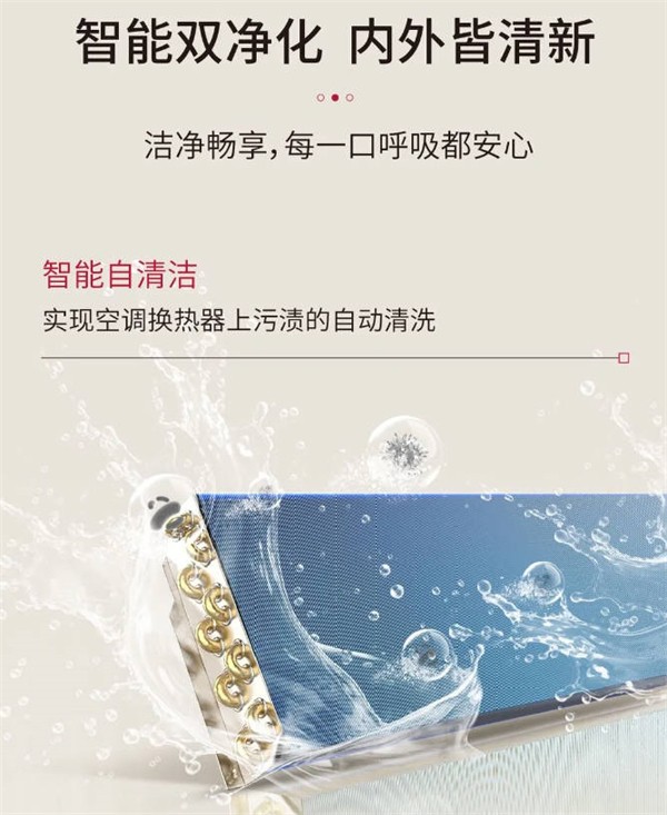 洁净畅享,每一口呼吸都安心。智能自清洁,实现空调换热器上污渍的自动清洗。