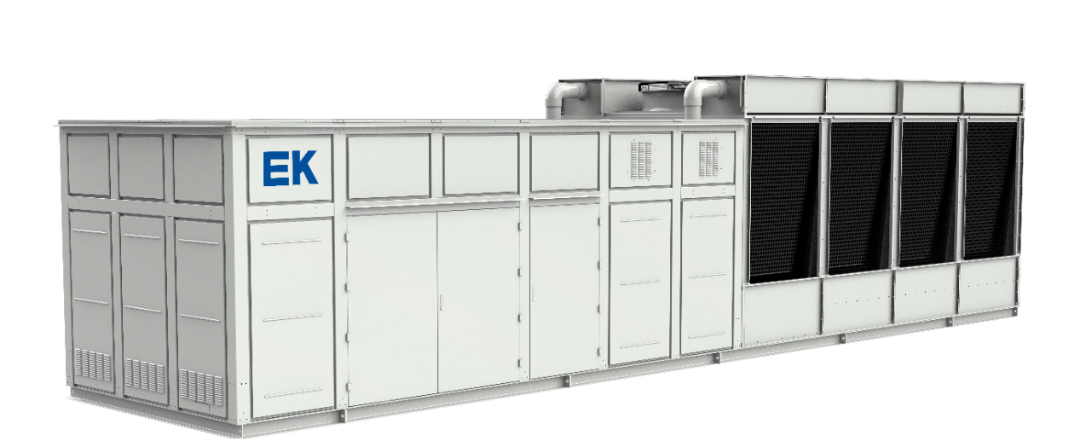 EK云智慧高效集成冷站为6个面全密封钣金结构,配合特殊的降噪处理,对比传统的水冷螺杆系统降低10-15 dB(A)。