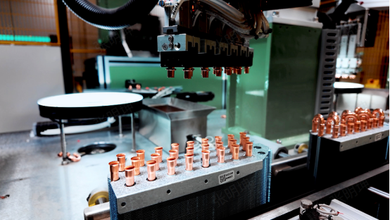 走进海信日立黄岛工厂,可以看到一系列智能化、数字化变革带来的崭新场景。比如,蒸发器和冷凝器空调“两器”是空调系统中的重要组成部分,目前行业在此方面的自动化率普遍为30%左右,而海信日立打造了行业首个无人化“两器”黑灯生产车间,将视觉系统结合算法分析自动纠偏,以机器人柔性生产结合“子弹头”机械引导,实现从自动冲片、插钢针、取片等全工序自动化,通过三项技术行业首创,以及行业首个横斜插一体的自动穿管,达到质效双升。