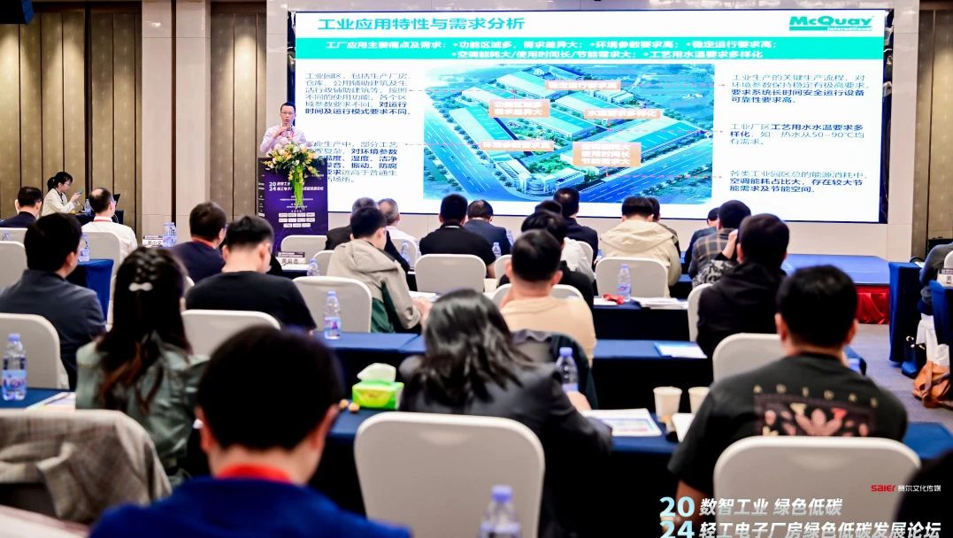 麦克维尔协办本次会议,并进行题为“针对轻工厂房的全效直膨空调系统解决方案”的主题分享,为提升轻工电子厂房暖通设计的节能效果及相关实践和研究提供参考和支持。