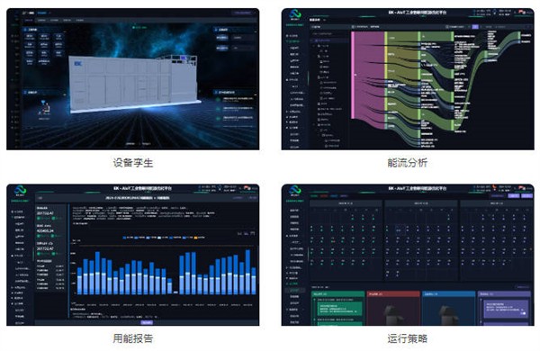 应用设备数字孪生技术,可视化监测运行能耗及状态,基于全域能耗数据生成能流图谱,使能耗情况一目了然。平台定期生成专业用能报告并提供节能建议,支持自定义运行策略,实现能源闭环管控。
