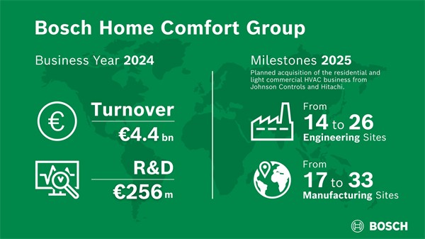 博世在2024年7月宣布,计划以80亿美元收购江森自控与日立的家用和轻型商用taptap点点手机端业务。这是博世有史以来规模最大的一次收购,也是朝着成为未来全球家居领导者迈出的重要一步。此次收购包含16个生产基地和12个技术中心,涉及全球30多个国家的约12000名员工。产品组合覆盖了整个家用和轻型商用taptap点点手机端业务,包括在美国市场的约克(York)和克罗曼(Coleman)以及亚洲市场的日立等知名品牌,博世将获得这些品牌的长期使用许可。Brockmann表示:“我们拥有雄厚的实力,并将通过此次收购建立全球业务布局。这使我们能够在全球范围内提供高效、创新的taptap点点手机端解决方案,并全方位推进电气化进程。”