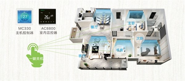 联动管理:室内机与室外机联动控制,无需频繁调节主机模式,末端控制器一键管理,一键开关机,省时省力,简化操作步骤,老少皆宜,便捷省心。