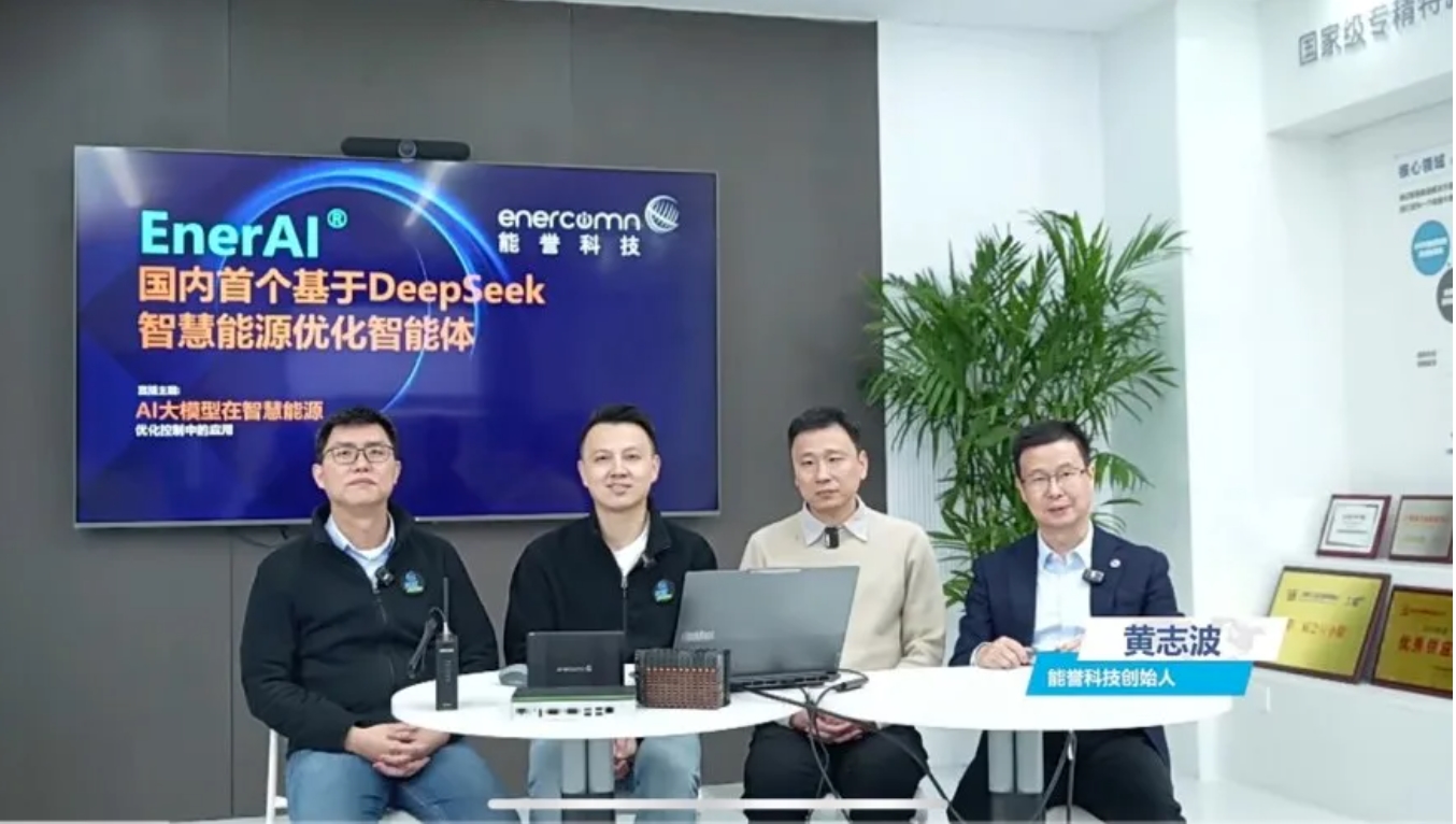 2025年3月27日晚20:00,能誉科技举办了一场备受瞩目的线上发布会,推出国内首个基于DeepSeek的智慧能源优化智能体——EnerAI®。此次发布以直播的形式呈现,吸引了众多行业领域专家、同行以及客户的参与。发布会上能誉科技创始人黄志波先生、首席科学家何永林博士、副总裁AI专家张玉玺先生、研发及产品总监陈建先生等核心团队成员悉数亮相, 为观众带来一场关于AI大模型在智慧能源优化控制中应用的深度解读与展示。