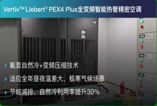制冷采用Vertiv™Liebert® PEX4 Plus全变频智能热管精密空调,氟泵自然冷与变频压缩机自适应切换,低碳节能,而且在极寒与酷暑间实现无缝过渡。供电采用Vertiv™Liebert® APM2系列UPS,支持复杂供电环境下运行、热插拔维护,效率高达97.5%。整体供配电系统采用Vertiv™APT2.0新一代预制式电力模组,工厂预制、铜排连接,极大缩短施工周期。
