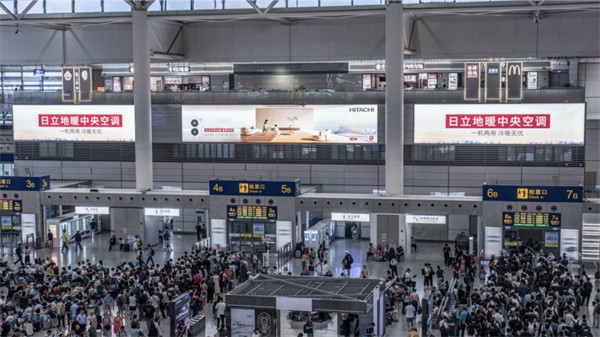 在北京、上海、广州的高铁枢纽,人潮涌动、车声作响。候车厅的大屏上,日立中央空调的广告醒目展现,将“家的舒适”带入城市的节奏中,让短暂停留的片刻,也能唤起对舒适生活的想象。