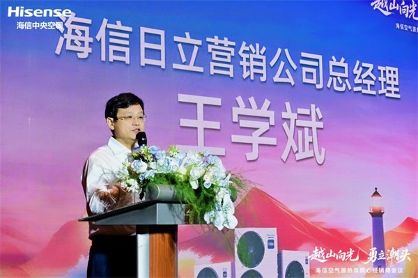 海信日立营销公司总经理王学斌致辞回顾了公司自成立以来所经历的不平凡历程。他表示,创业维艰,海信中央空调曾面临诸多挑战,从技术突破到市场开拓,每一步都充满艰辛。正是在广大经销商伙伴与总部并肩作战、不离不弃的支持下,公司才得以稳步成长、持续壮大,并与各位伙伴结下了牢不可破的战友情谊。