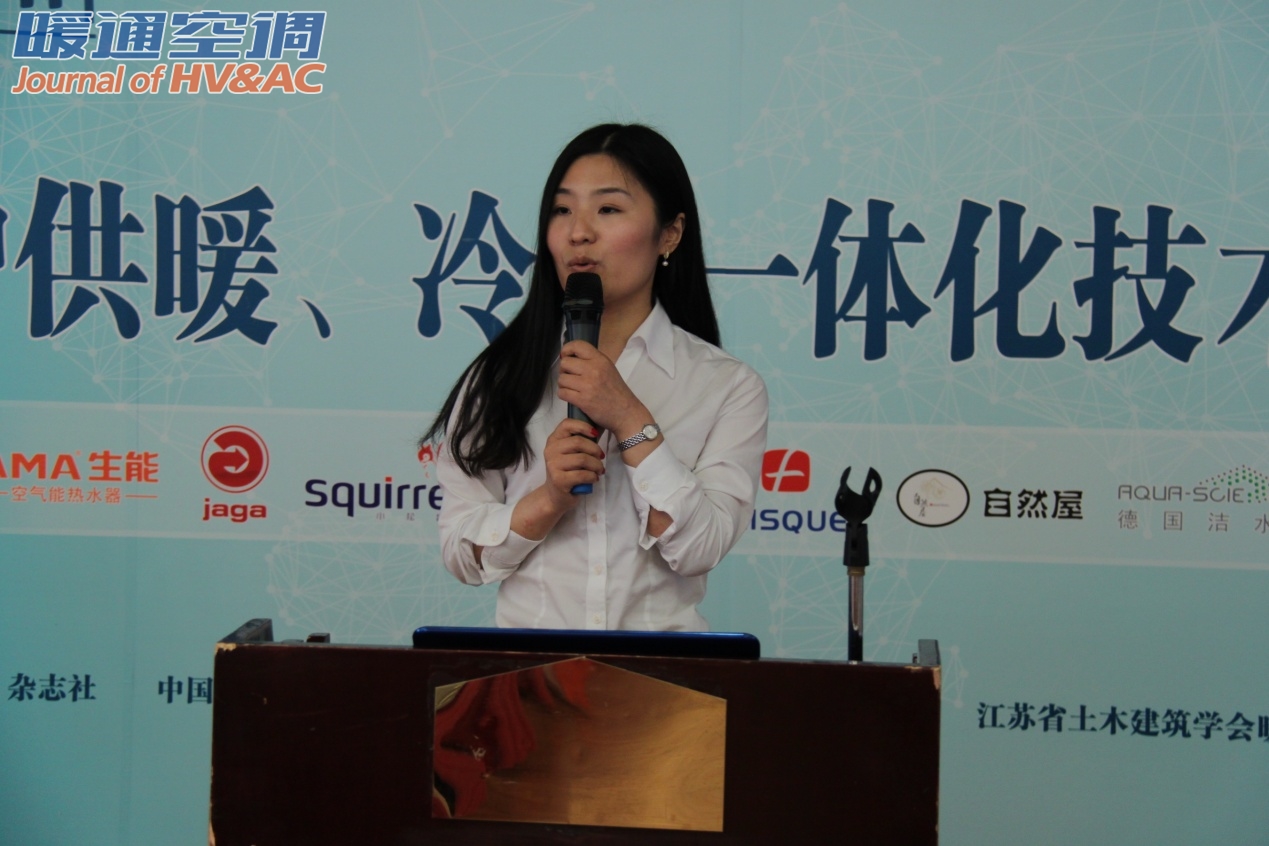 接下来,由广东热立方热泵系统有限公司童风喜总经理介绍了空气源热泵低温供暖的应用难点和技术核心,尤其突出了在江苏省的应用特点;德国艾菲尔有限责任公司市场部经理刘偌曦介绍了配套优质管路系统具备的特质及地暖管材的特性;雅凯热能科技(上海)有限公司市场部经理谢冰介绍了独特的低温散热器技术,以及室内环境自控系统。
