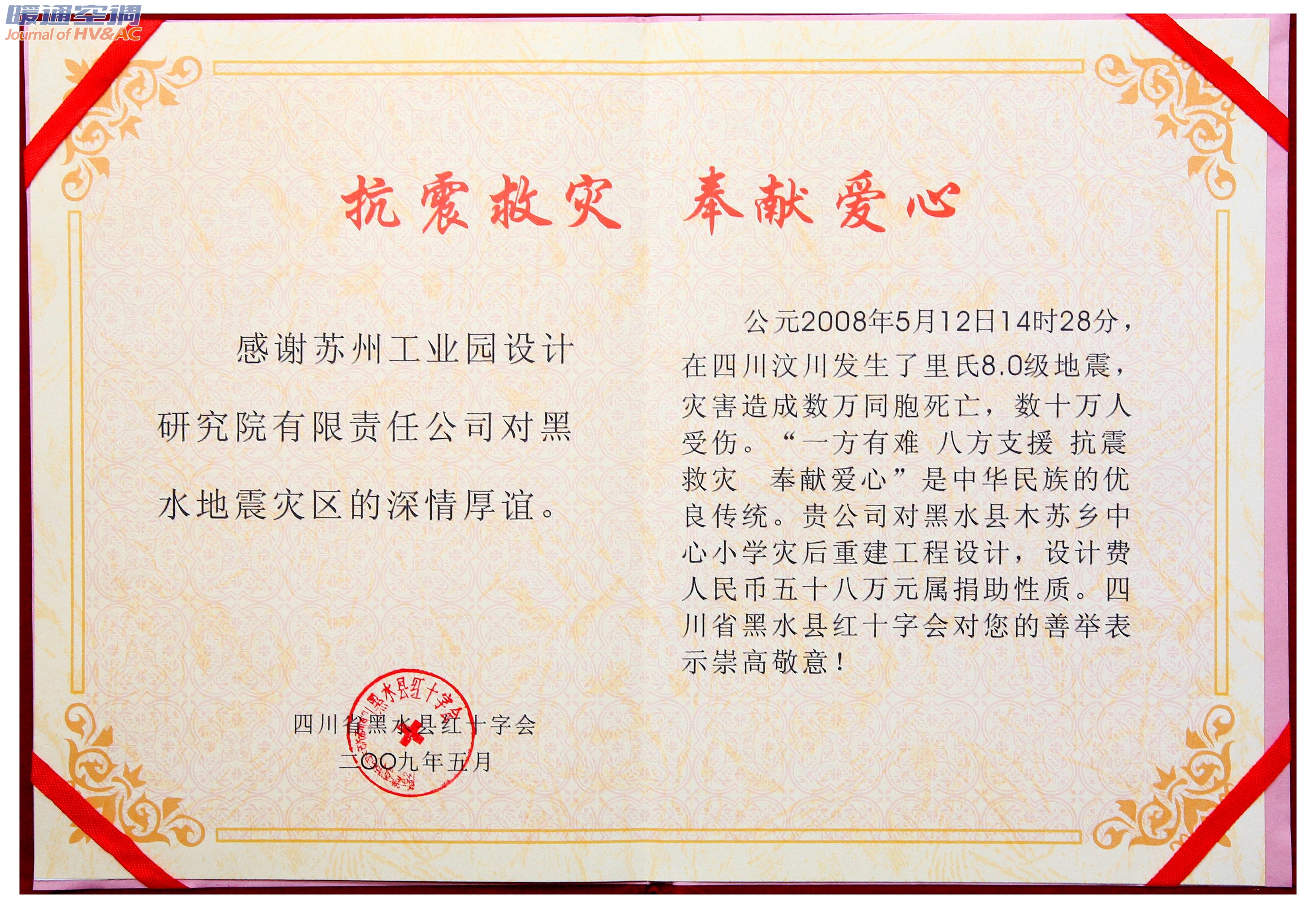 自成立以来,园区设计在承担社会责任方面,丝毫不敢有任何推卸与怠慢,始终把承担责任、回报社会作为企业的发展宗旨。2008 年汶川大地震后,园区设计积极组织全公司员工投入到援建四川震后重建工作,董事长冯正功召集公司最优秀的设计人员组成了绵竹援建项目团队,第一时间赶赴灾区,在余震不断的危房中开展工作,一个个援建项目从草图变为现实。此次援川用时短、任务重、要求高,很多次,冯正功董事长和设计师们不分昼夜地奔波于绵竹与苏州、成都之间。如绵竹体育中心从设计到开工修建仅用了2 个月的时间,但最终现代化的设计及良好的现场造价控制赢得了指挥部领导的高度评价!绵竹历史博物馆以现代建筑语言延续川西地域文化、在材料选用上精益求精,力求与当地的环境和谐统一。