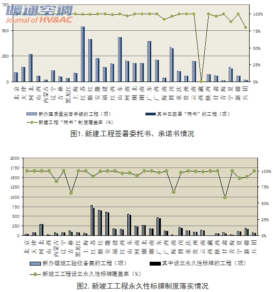 2016年2月,全国新办理竣工验收备案工程6110项,其中有5852项工程设立永久性标牌,覆盖率为95.78%,较上月上升1.13个百分点,安徽、河北、湖北等16个省(区、市)和新疆生产建设兵团覆盖率达100%;有5300项工程建立质量信用档案,覆盖率为86.74%,较上月下降3.60个百分点,浙江、安徽、河北等12个省(区、市)覆盖率达100%。