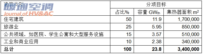 莫桑比克政府极力支持太阳热能技术路线图的起草工作。莫桑比克科学、技术、高等教育和专业培训部Jorge Olívio Nhambiu教授明确表示,到2030年达到人均0.1平方米集热器面积,安装总量达到340万平方米。同时,路线图还针对住宅、公共建筑、酒店和旅馆以及工业和商业建筑设定了不同的目标和相应的行动。具体如下表: