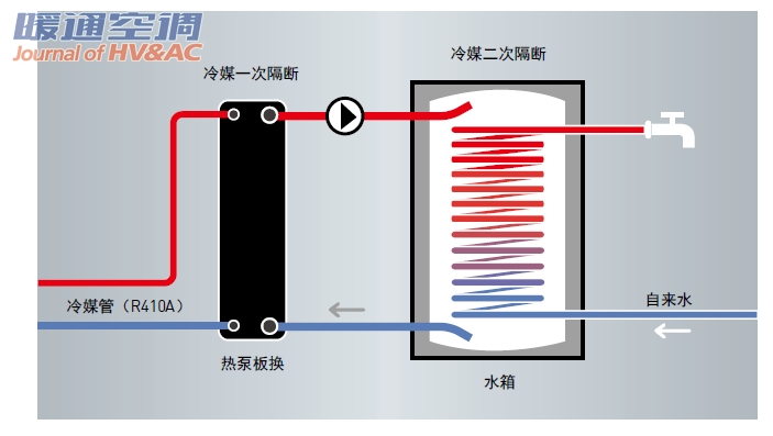 (1)采用直流变频+喷气增焓的三联供热泵,提供采暖制冷和生活热水。