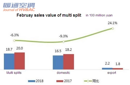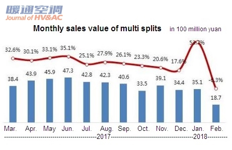 The obvious fading of domestic market led to the decline of multi splits in February of 2018, because all factories were closed during Spring Festival, with 7-15 days leaves.