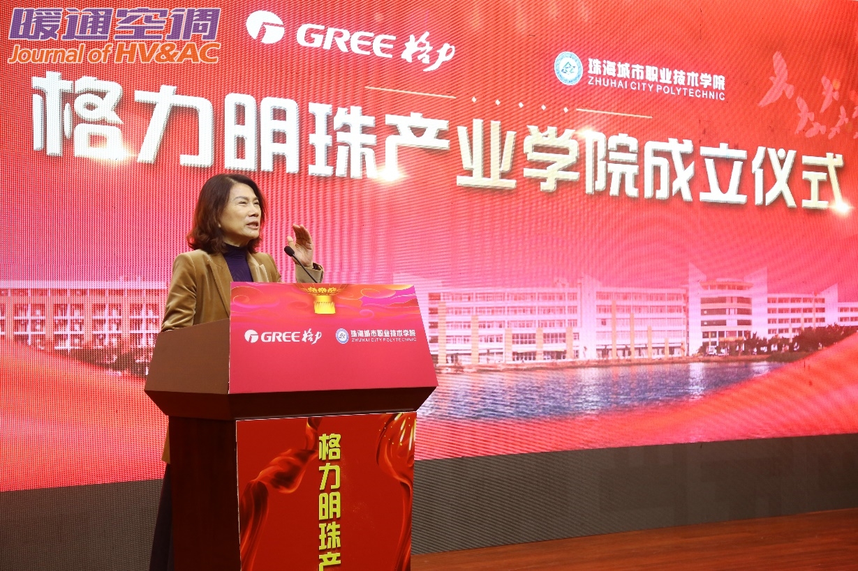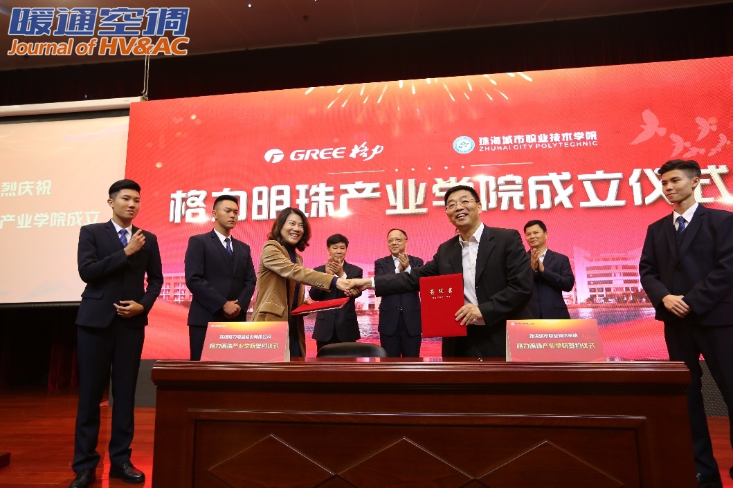 11月19日,格力明珠产业学院成立仪式在珠海城市职业技术学院行政中心隆重举行。广东省教育厅副巡视员胡振敏、珠海市政府副市长阎武、珠海市教育局局长林日团、珠海城市职业技术学院党委书记钟以俊、珠海格力电器股份有限公司董事长兼总裁董明珠、珠海格力电器股份有限公司总裁助理陈伟才、格力明珠产业学院院长王宇东等共同出席了签约仪式,与现场四百多名师生及格力员工共同见证了格力在校企联合人才培养方面的又一重大举措。
