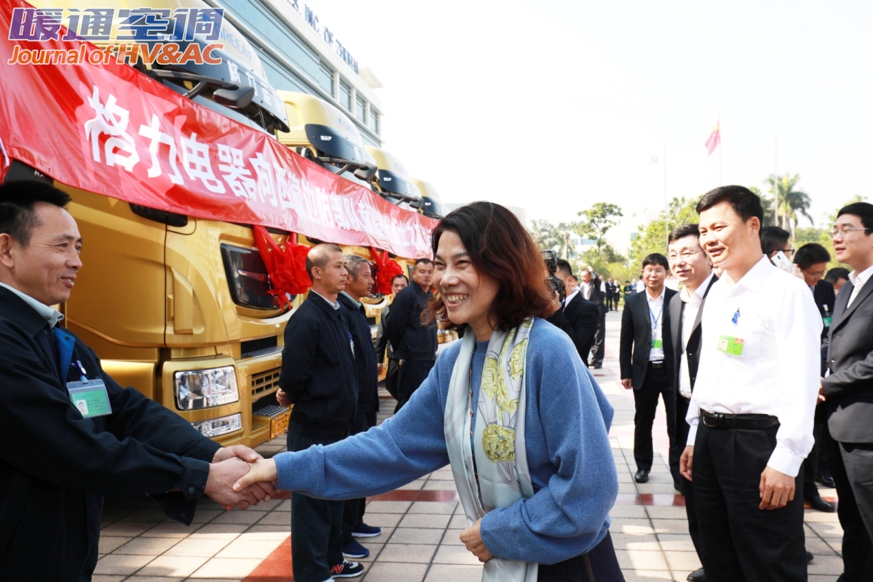 格力电器董事长兼总裁董明珠与车队运输人员亲切握手