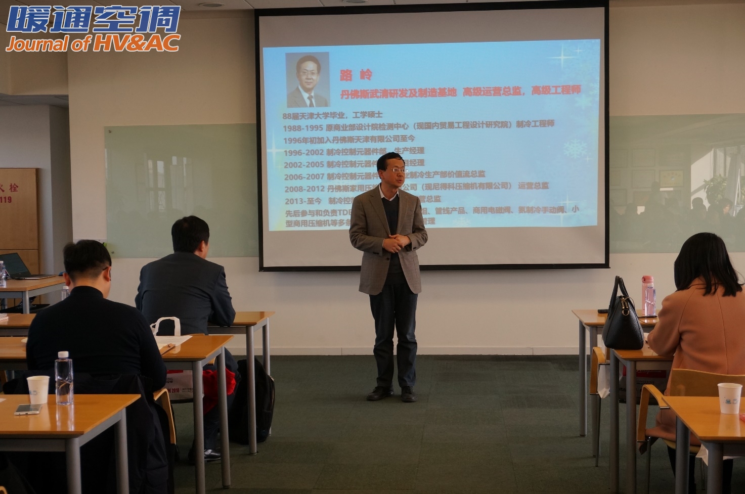 会议由北京制冷学会理事、制冷空调专业委员会副主任、北京电子信息技师学院正高级讲师李磊主持,北京制冷学会理事、制冷设备专业委员会副主任、丹佛斯制冷事业部高级市场传讯经理肖伦向来宾作了丹佛斯的企业介绍。