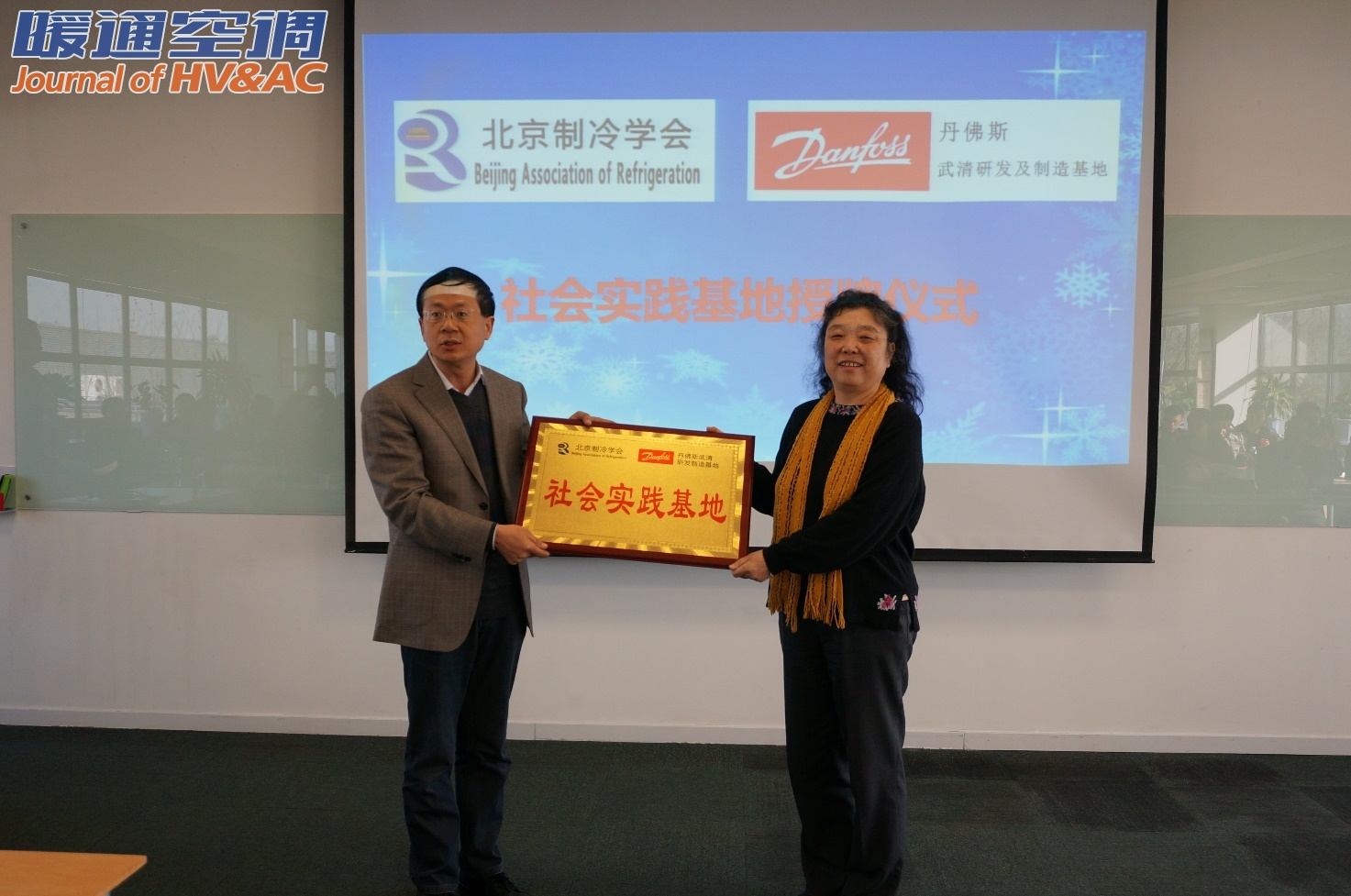 随后,北京制冷学会秘书长商跃代表学会向丹佛斯武清研发制造基地授了“北京制冷学会社会实践基地”的牌匾。