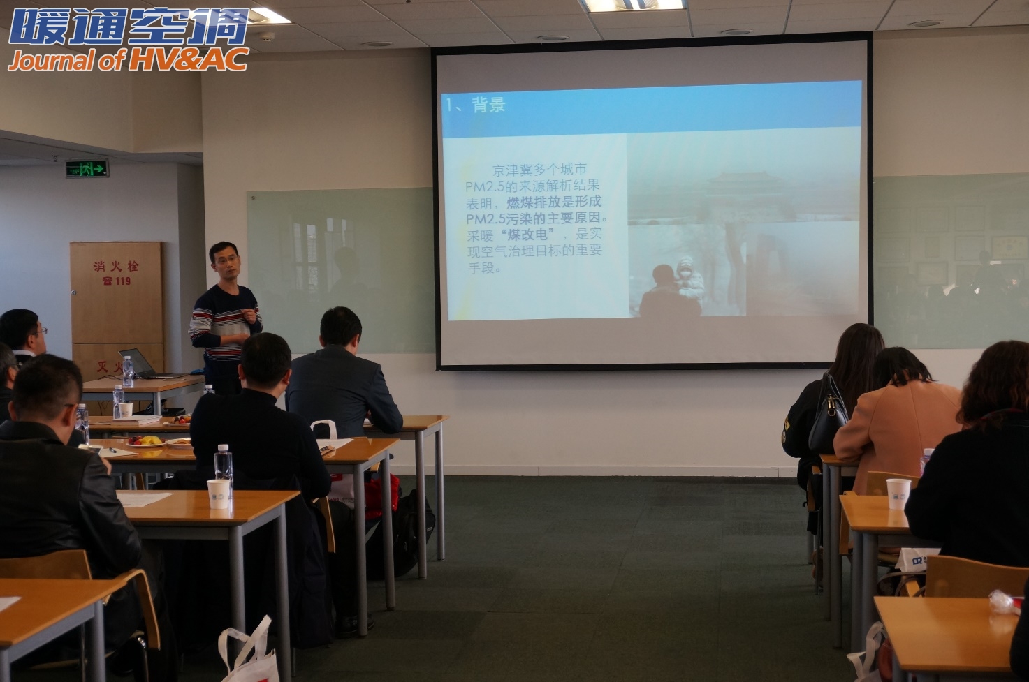研讨会上,北京工业大学硕士生导师许树学博士,围绕供暖季燃煤排放与PM2.5污染的关系、采暖“煤改电”与实现空气治理目标,作了《空气源热泵/热水机组型式及运行特征》的学术报告。报告对北方地区常用的几种空气源热泵的设计原理、型式及运行特性进行了总结,对新型的空气源热泵进行了介绍。