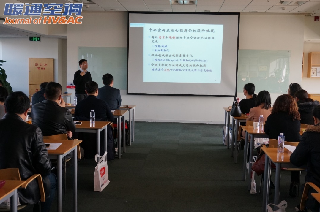 北京制冷学会制冷设备专业委员会副主任、青年委员、清华大学副教授、博士生导师王宝龙,结合中央空调主机市场两类最重要产品——多联机和冷水机组技术近期出现的比较明显的发展和变化,作了《多联机及冷水机组技术的发展及趋势》的学术报告,与听众分享了多联机和冷水机组技术的近期热点并对技术发展趋势作了展望。