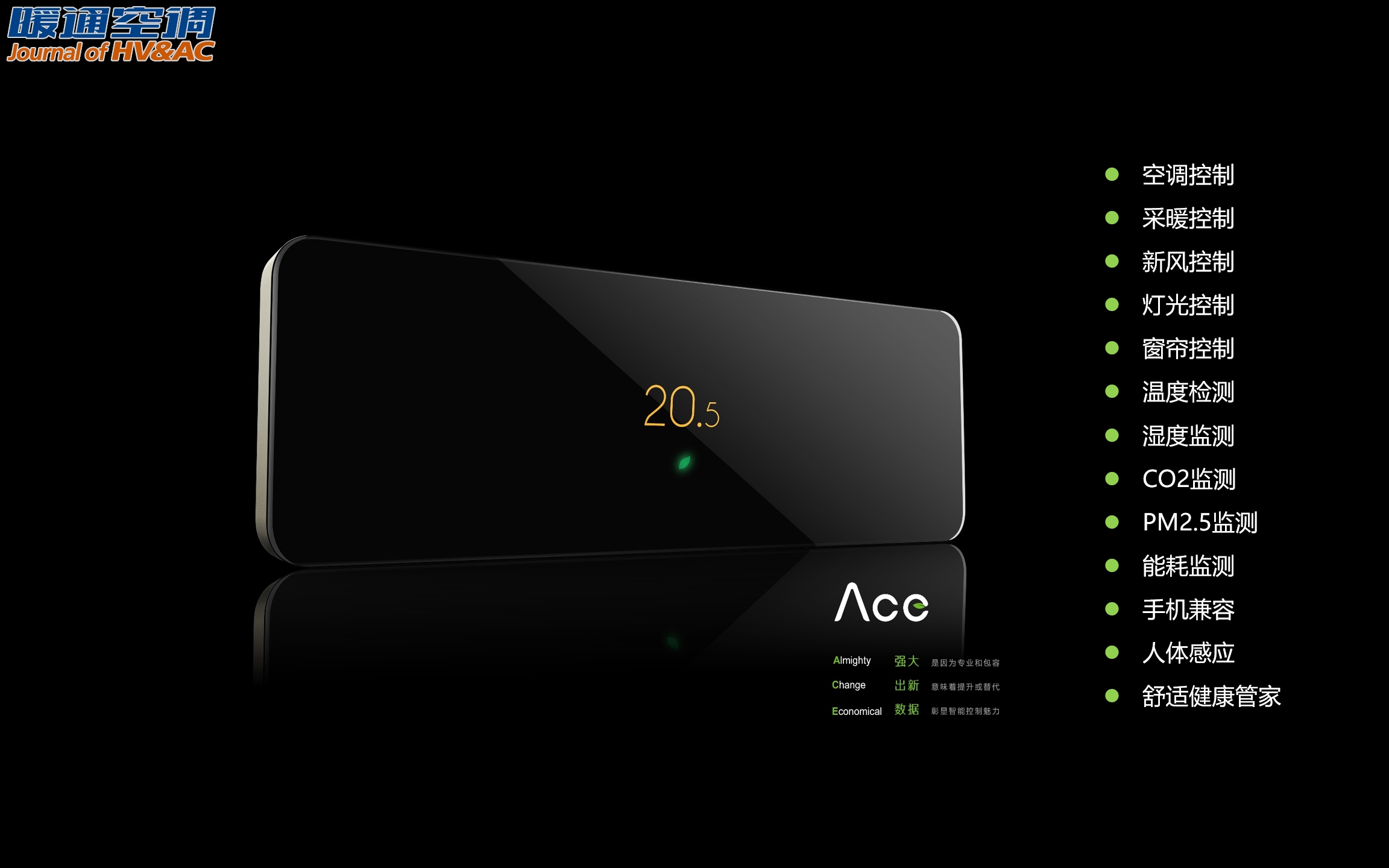 Ace,作为一款中高端智控产品,外观典雅、精致,可以充分满足中高端客户的审美需求。在功能上,将空调控制、采暖控制、新风控制、灯光控制、窗帘控制、温度检测、CO2、PM2.5监测、能耗监测等集于一身,将房间内多个开关融合为一体。体验方面,自定义情景模式、一键操作、人体感应、手机APP操作,更多智慧科技的应用,让家更有感觉。