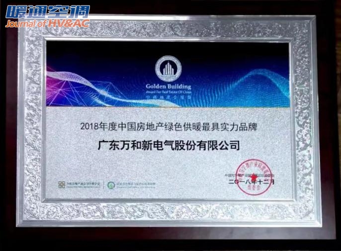 “2018年度中国房地产绿色供暖最具实力品牌”