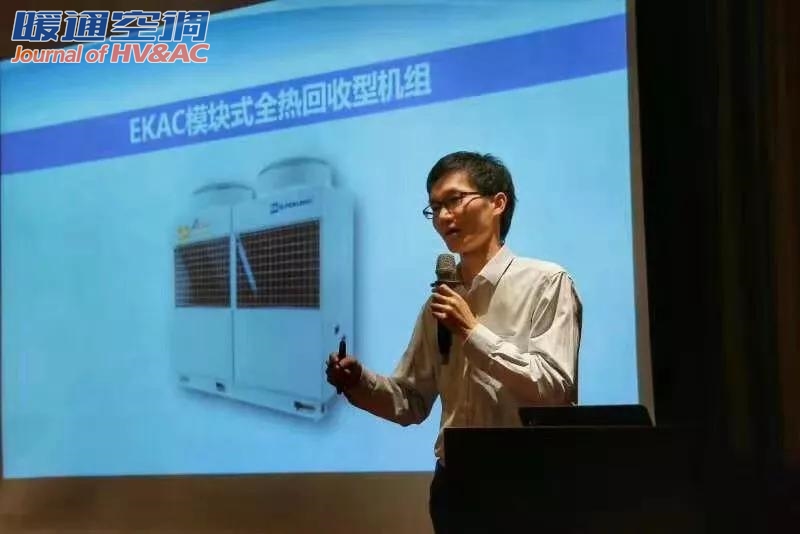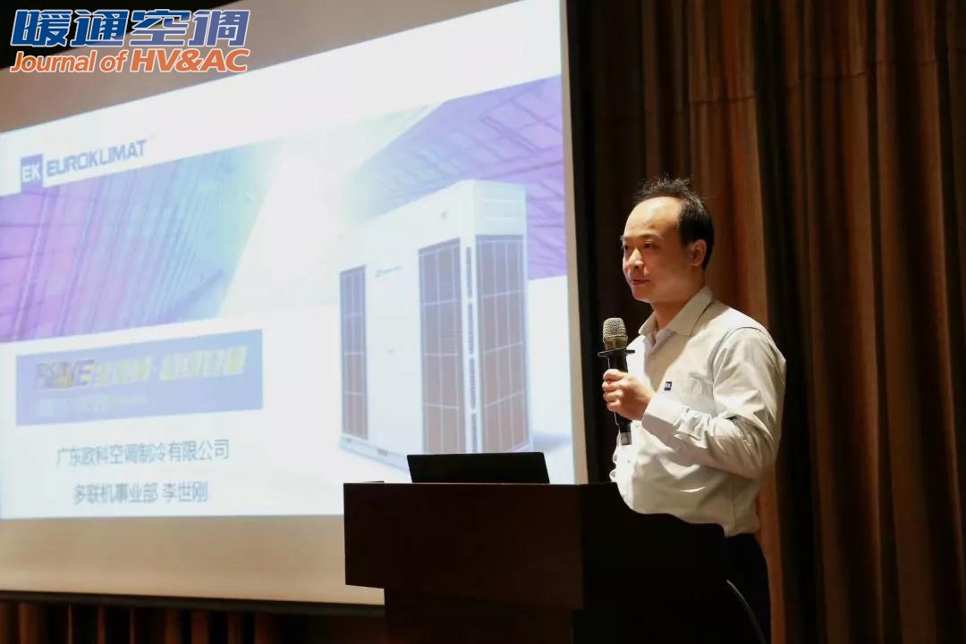 在湖南会议现场,EK多联机事业部经理李世刚向与会嘉宾重点介绍了EKRV-Ey系列喷气增焓全直流变频多联式空调,机组拥有全直流变频喷气增焓压缩机的优异性能,搭载先进的中压补气系统,-30℃超低温稳定运行,完美解决寒冷地制热难题。此外,机组采用全新四面环绕换热器结构,独特弯道通风设计,大幅提升换热效率,二级过冷可达30℃,IPLV(C)高达9.6,制冷性能更加卓越。机组单机容量可达42HP,业界首创。