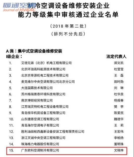 [企业]EK获集中式空调设备维修安装A类1级企业资质