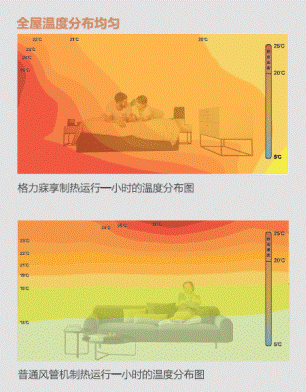 因此,小编就不得不提起这款拥有行业原创送风方式的格力·寐享卧室专用室内机啦——它搭载了格力自主研发的分布式送风技术,其中下沉式制热采用了侧回下出气流方案,实现地毯式送风。所谓地毯式送风,即暖空气直达地面,让暖意从脚下“升起”,从而能够更快感受到温暖。同时,暖空气由下向上的分布方式也会使得室内温度更加均衡,暖空气不再集中在房间上方,而是均匀地布满整个房间。有了格力·寐享的下沉式制热送风,我们的床铺也会温暖舒适,让人迫不及待地要与周公“约会”啦——