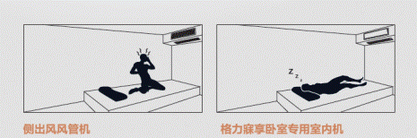 除了适宜的温度,安静的睡眠环境也是保证睡眠质量的重要因素。尤其是对于睡眠轻浅的人来说,即使极度疲惫,噪音也会让他们难以安睡。然而,传统家庭中央空调通常是侧出风风管机,由于其电机设计在回风口的正上方,就会使得噪音通过风口出来,扰人清梦。